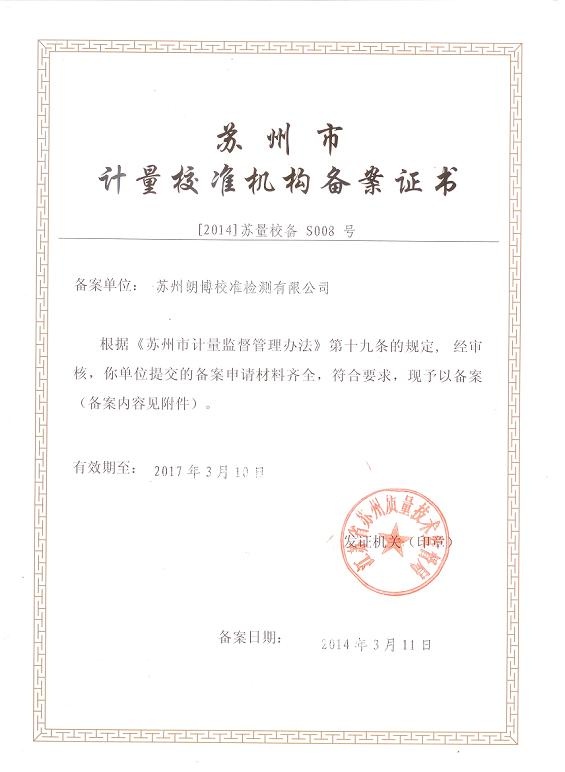 我司已通過浙江省計量校準機構備案有效期至2019年4月2日。朗博校準檢測有限公司(簡稱朗博實驗室)是...